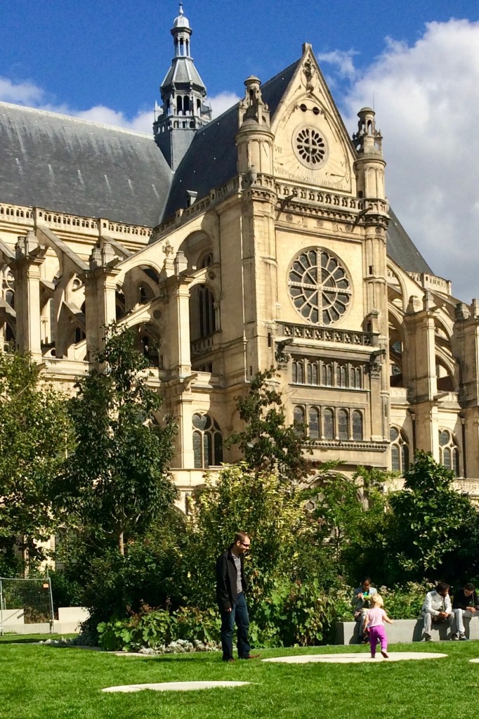 The next day we wanted to stroll around the city for a bit and just take it all in. We took our time and walked north towards the Chatelet-Les Halles area. There we discovered the Jardin Nelson Mandela which was a large park where our daughter could run around. The park was surrounded by lovely scenery including the beautiful Saint-Eustache Church.