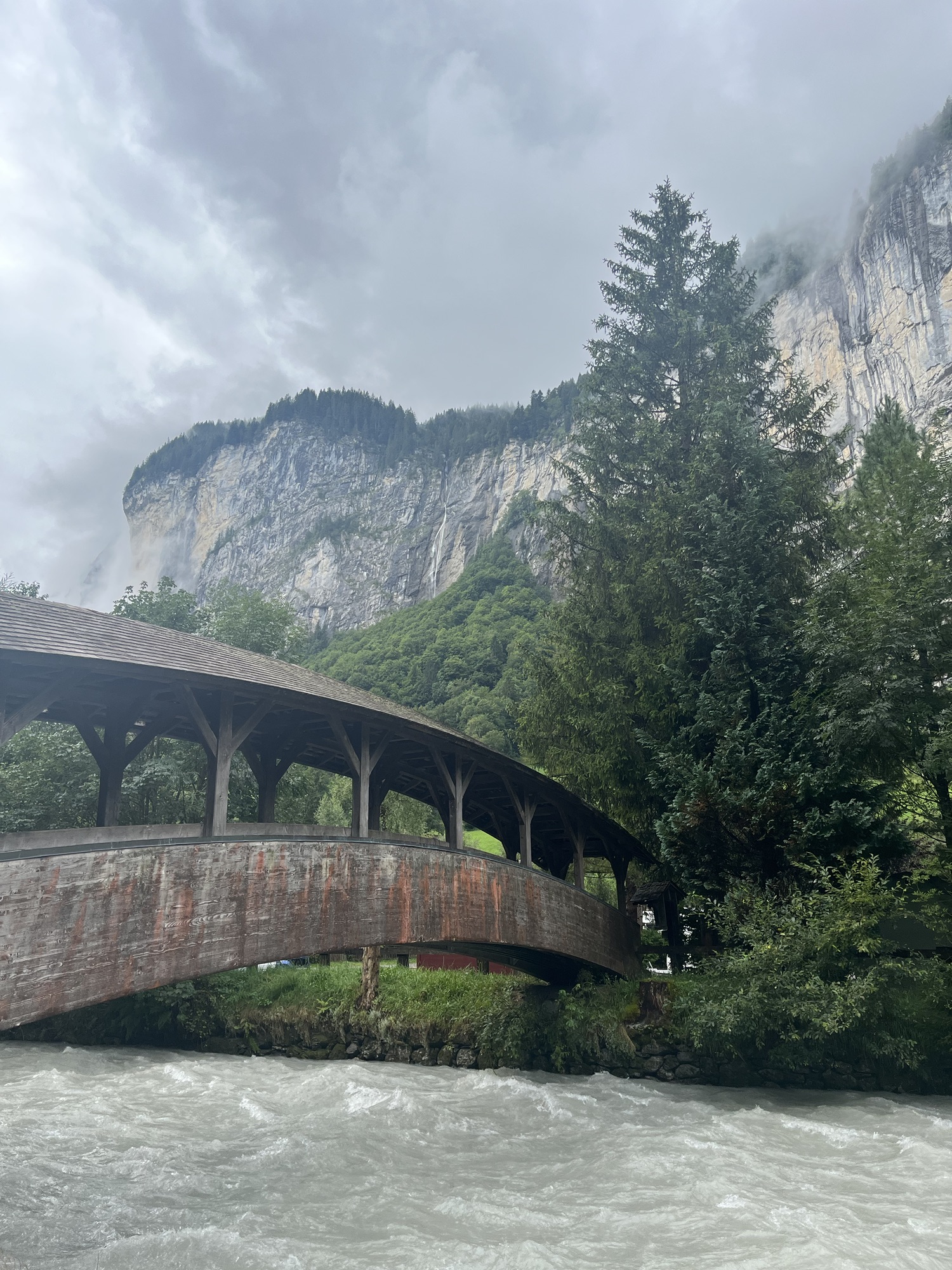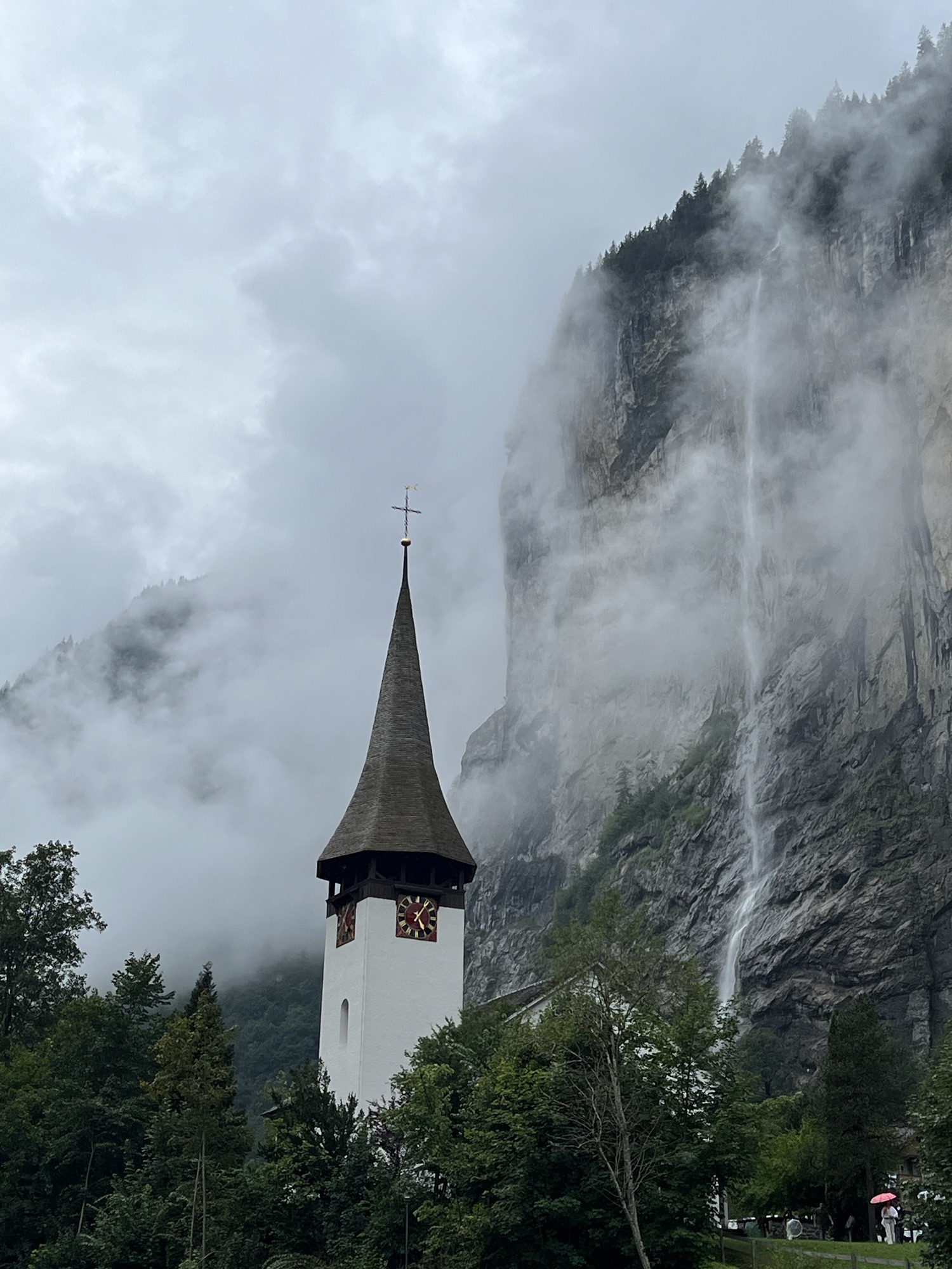 For a rainy day hike, the Lauterbrunnen to Trummelbach Falls trail is a great option. This easy, flat trail starts near Lauterbrunnen Church and passes the stunning Staubbach Falls.