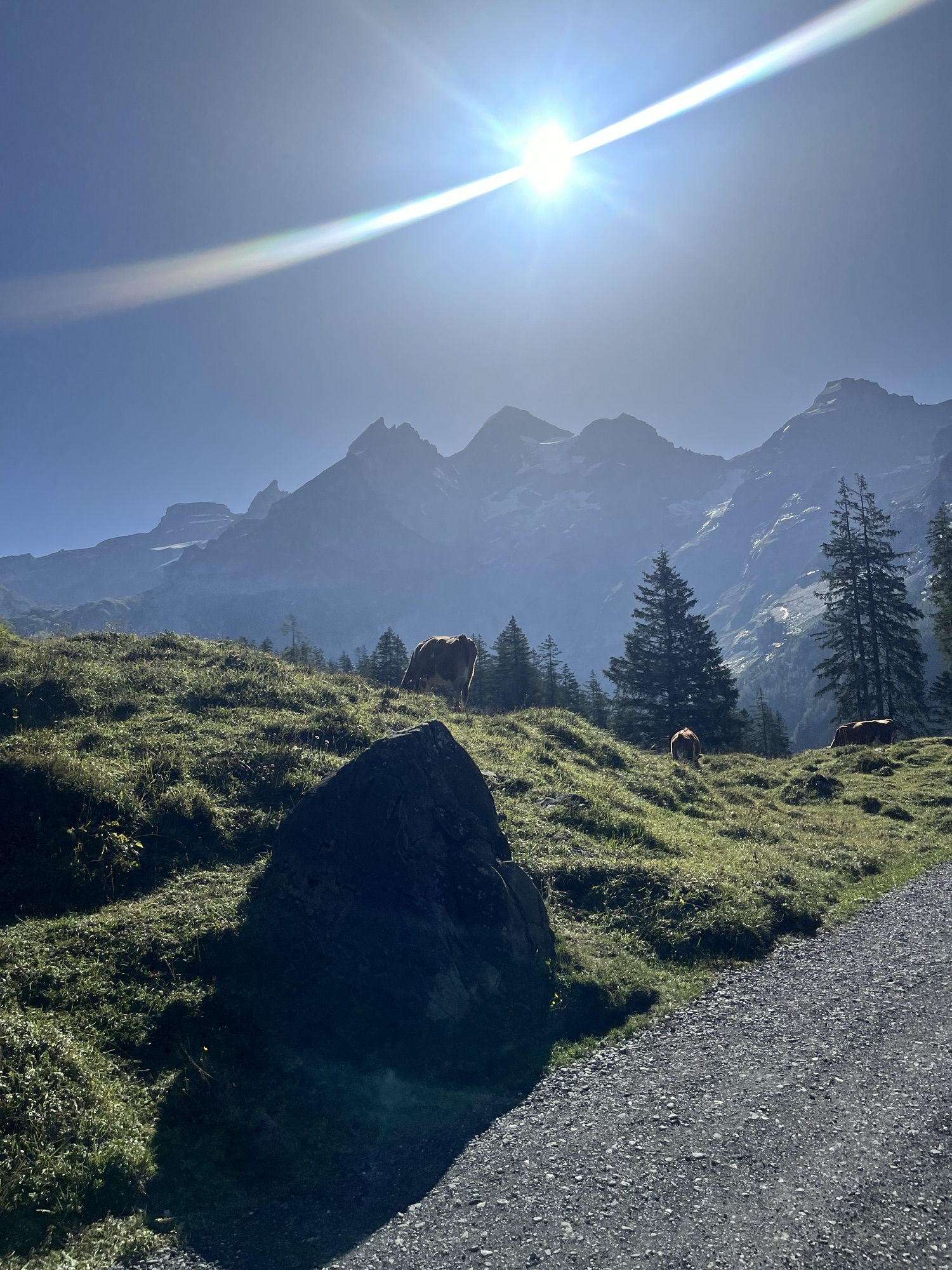 Tip: Consider taking the electric shuttle bus back up to the gondola station for a more relaxing return to Kandersteg. Otherwise you can choose to walk back uphill to the Oeschinen gondola station