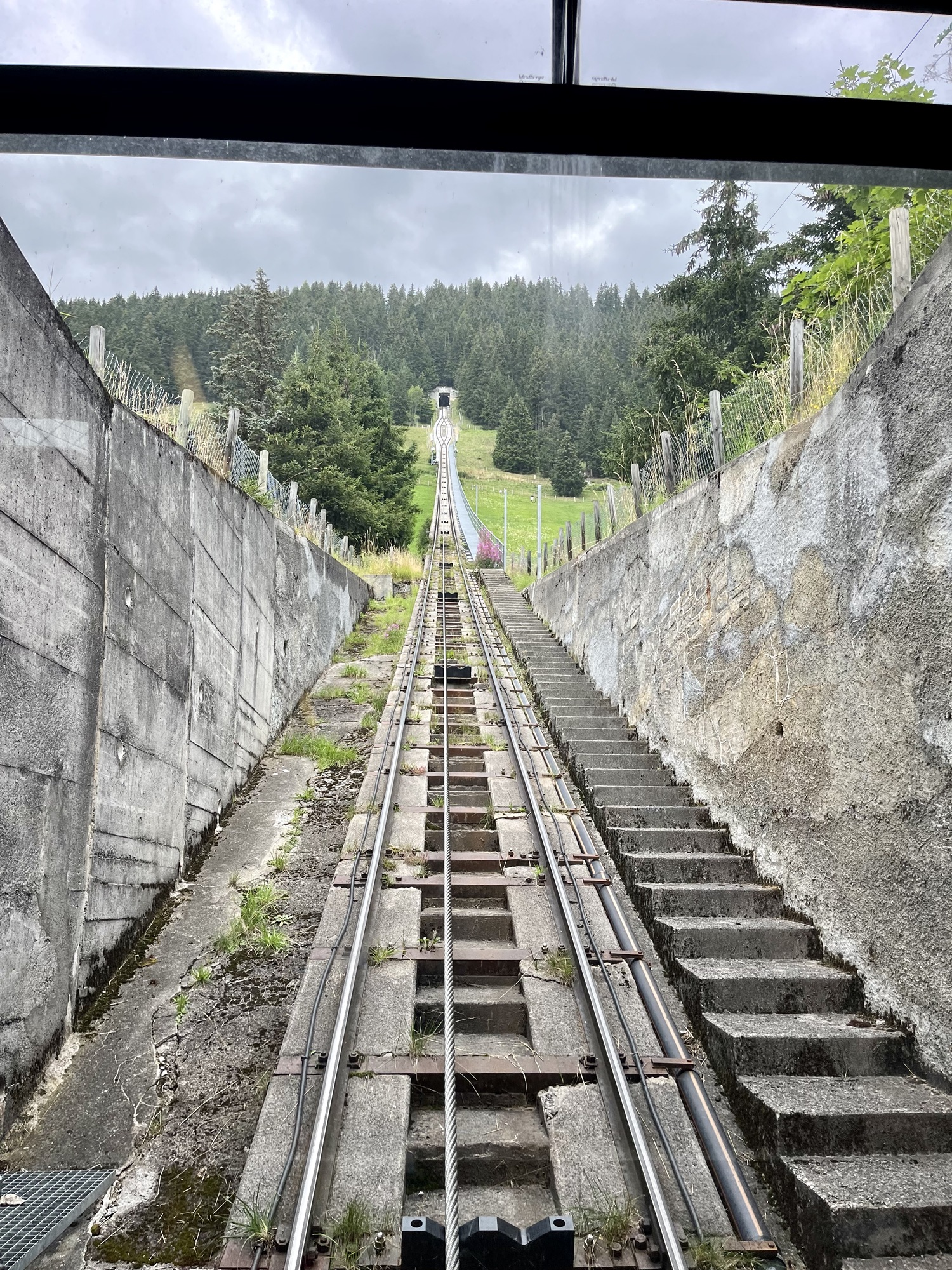 Once we arrived in Murren, we explored the town a bit and made our way up to the Allmendhubel station. It is here that you can take the funicular railway up to an amazing children’s playground. The kids had such as blast playing here as there are numerous fun activities to do such as a zip line, tunnels to climb through, a water labyrinth, swings and slides. We spent a good hour or two playing at the park. There is also a restaurant next to the playground where you can either dine inside or outside. They have different options for food and beverages. My wife and I were able to enjoy some coffee while the kids were playing.