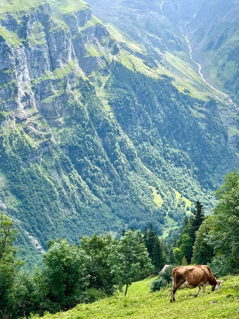 This scenic downhill hike from Mürren to Gimmelwald is perfect for families. The trail is a paved road and offers beautiful views of the Swiss Alps, with opportunities to see cows grazing and passing by mountain farms. It takes about 45 minutes to complete.