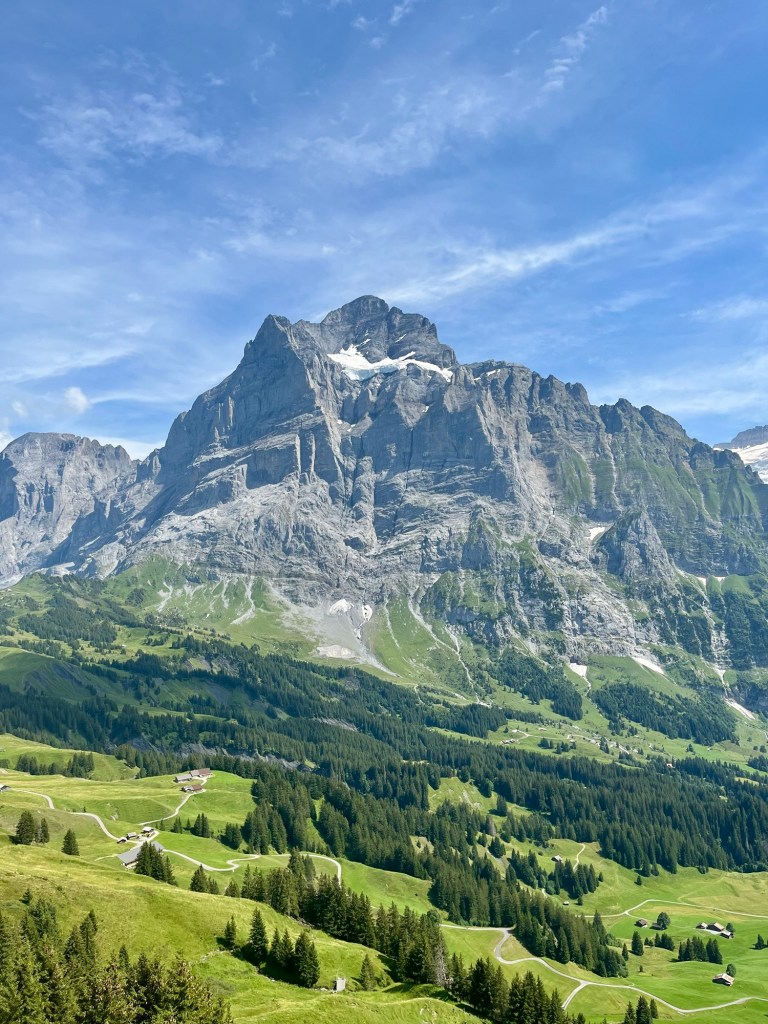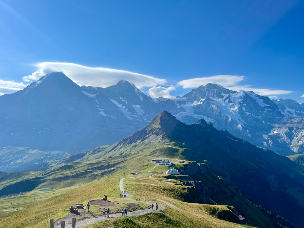 Starting at the Männlichen Gondola Station, the Royal Walk is a moderate, uphill hike that takes about 30 minutes. At the summit, you’ll be rewarded with panoramic views of the mountain peaks and the Lauterbrunnen Valley, including views of Lauterbrunnen and Wengen.