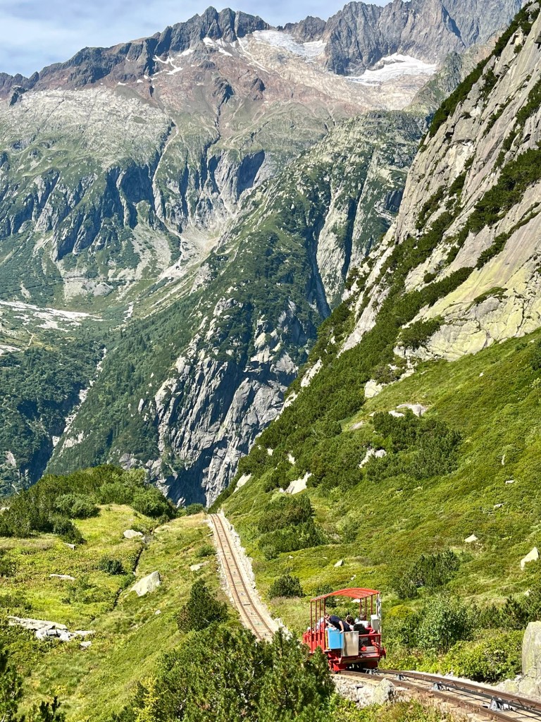 For a unique adventure, the Gelmerbahn funicular is a must-do! Located about an hour from Lauterbrunnen, the Gelmerbahn takes you up one of the steepest cable railways in Europe. Once at the top, you’re only a few meters away from the beautiful turquoise lake.