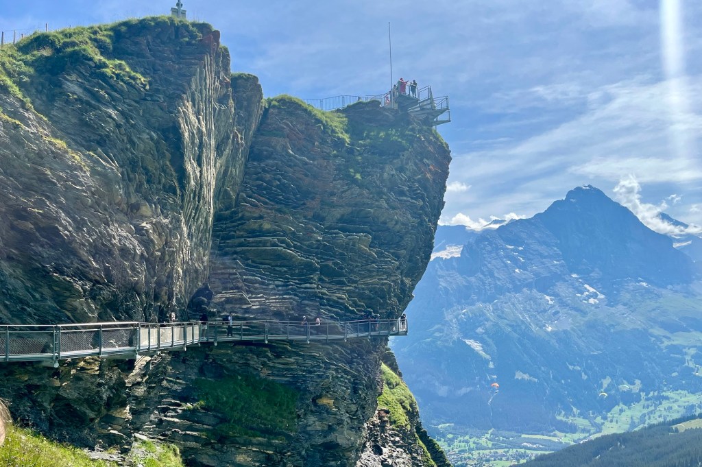 The First area, accessible by gondola from Grindelwald, offers a variety of family-friendly activities, including the First Cliff Walk. This thrilling walkway juts out over the cliff and winds along the mountainside. At the end of the walk you get to make your way out onto a platform that takes you even further out and up to offer breathtaking views of the Swiss Alps