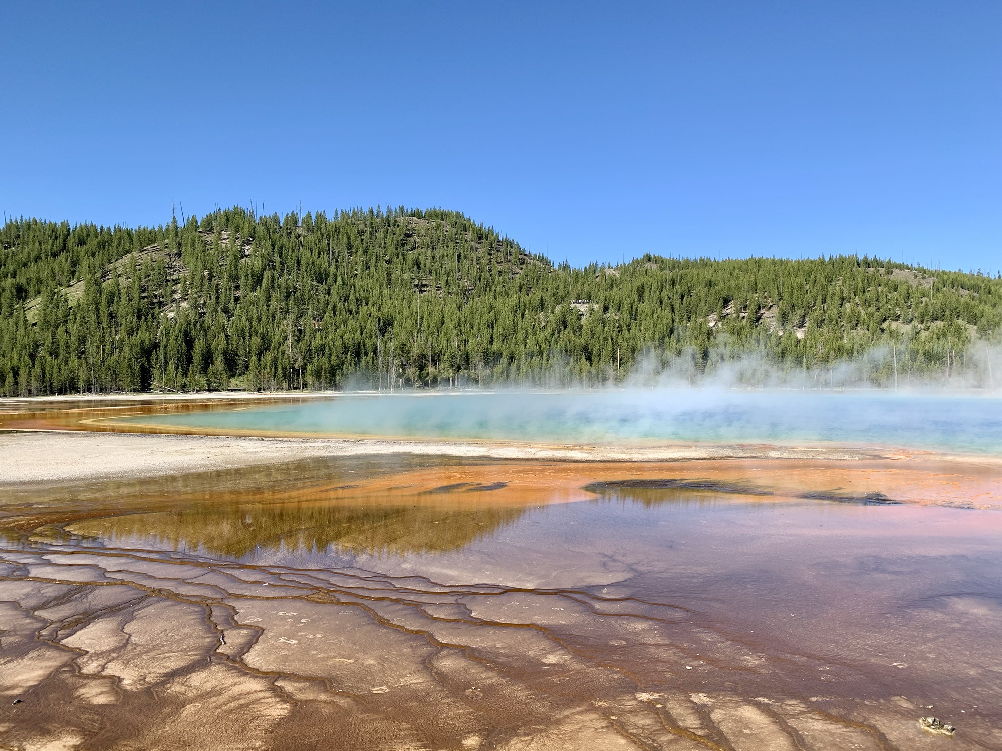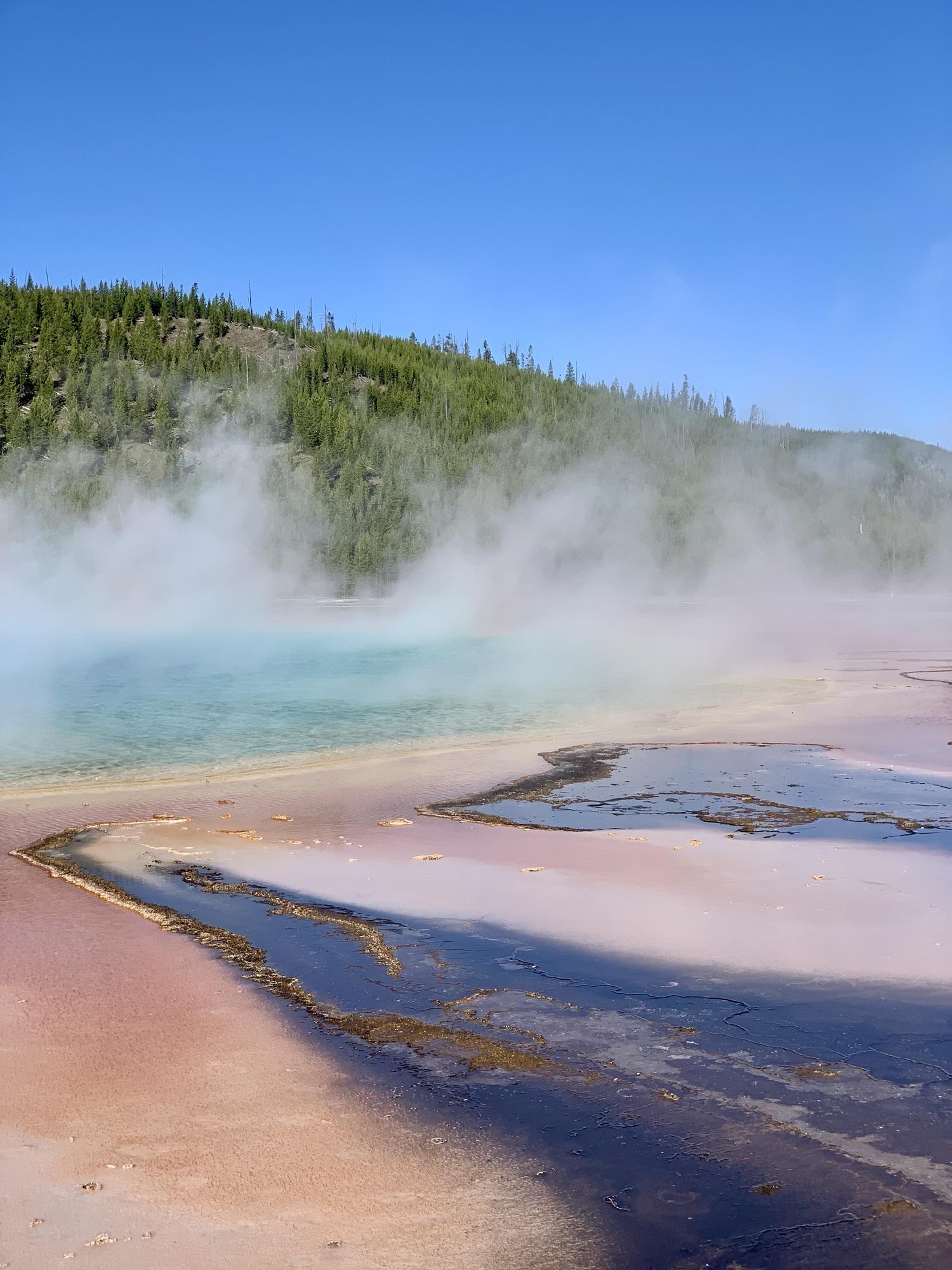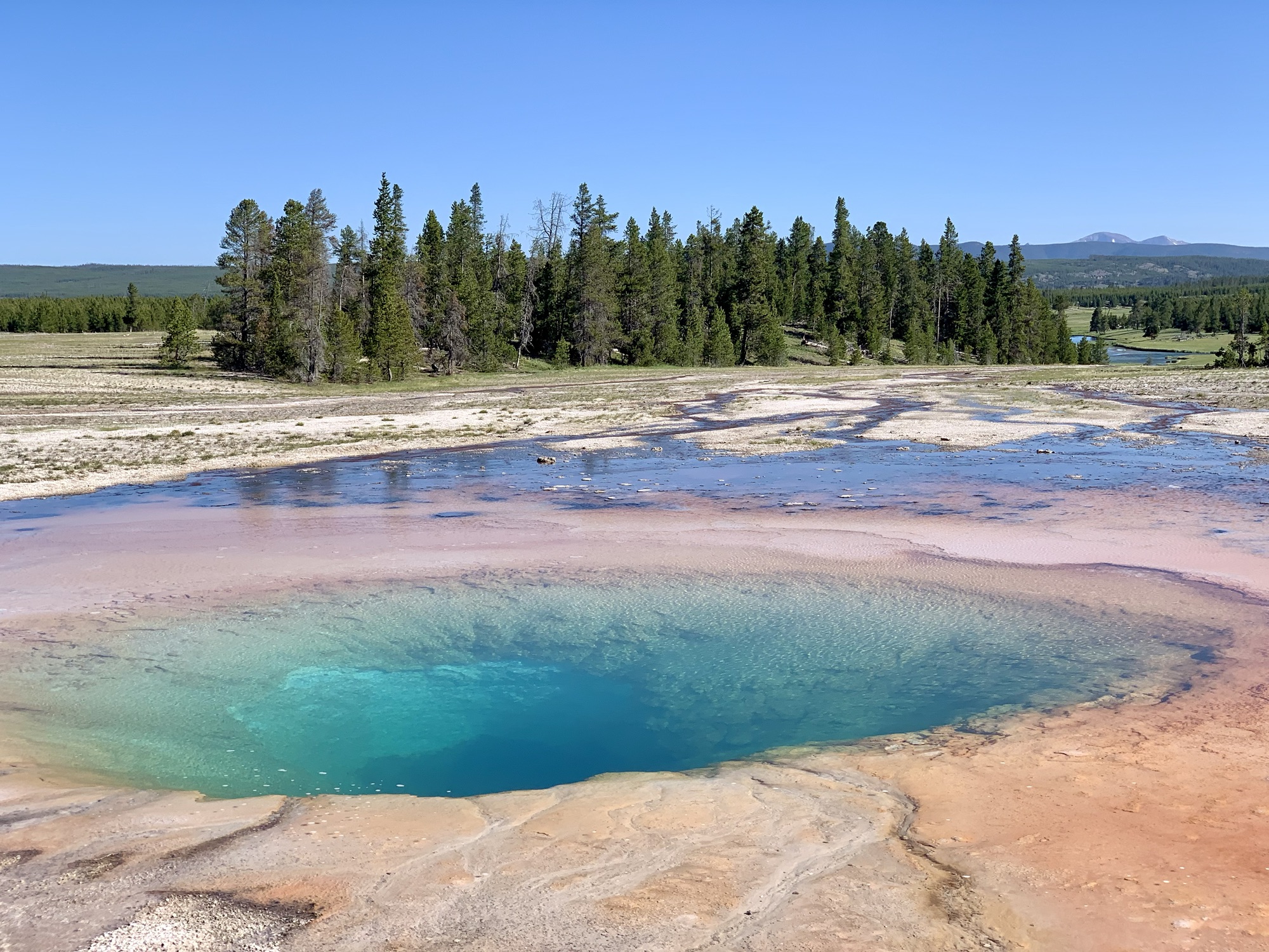 On the western side of the lake is an area called West Thumb which has really nice walking paths to see some incredible geysers and pools. The backdrop of the lake just beyond the trails make visiting this area even more picturesque.