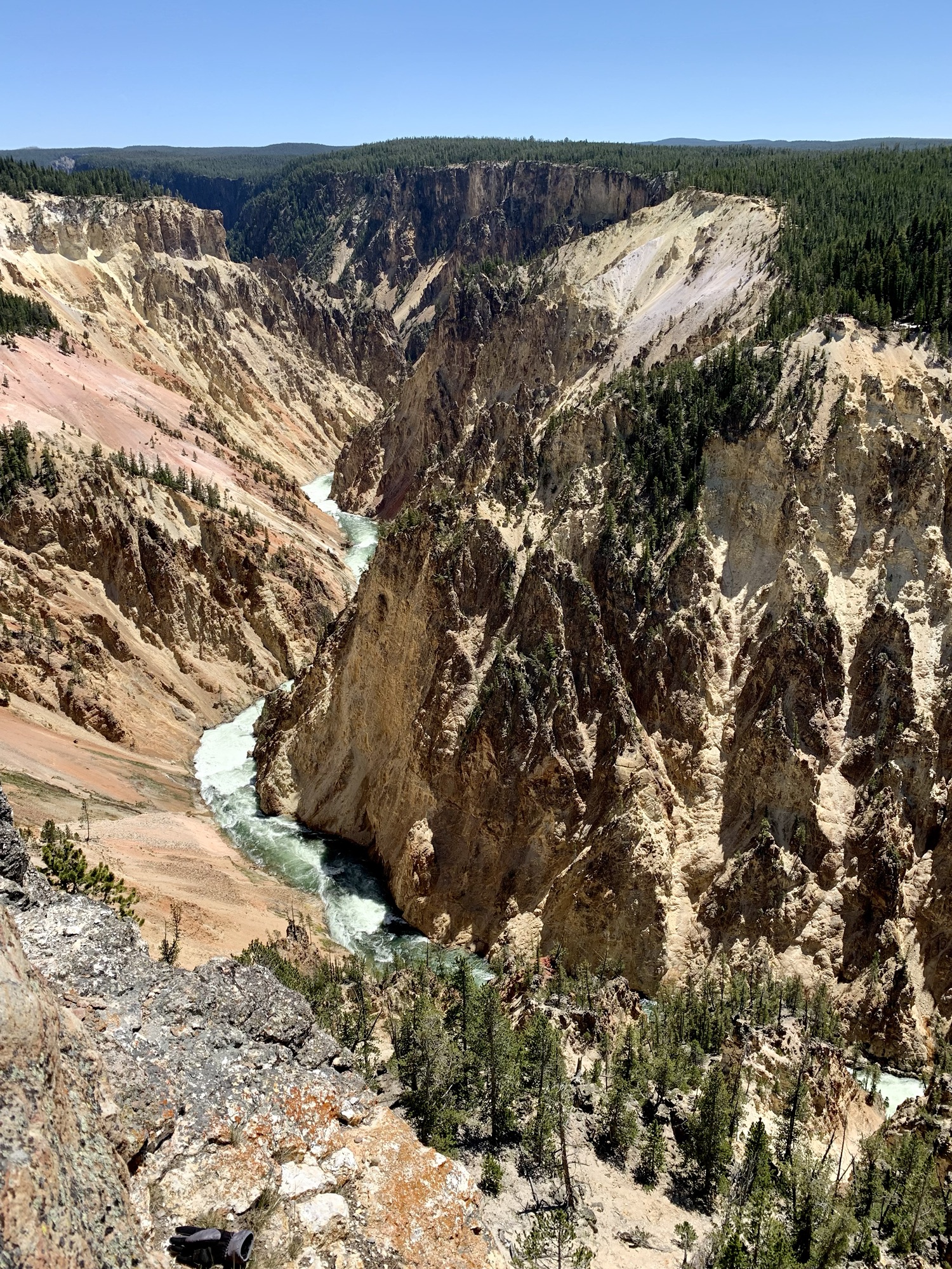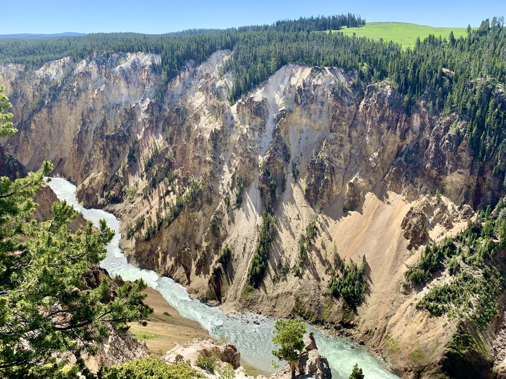 The Grand Canyon of the Yellowstone is an awe-inspiring part of the park. Upon entering the parking lot for the trail to the Brink of the Lower Falls, we were able to get a nice family photo and then started on the trek down to the Falls. The hike was short at 0.7 miles, and it is all downhill to the most iconic waterfall of Yellowstone. When we got to the Brink of the Lower Falls, we were rewarded with a breathtaking view of the Yellowstone River and the Grand Canyon of the Yellowstone. Keep in mind that the hike up can feel pretty strenuous at times, especially since I had our son on my back in a carrier, but it was nonetheless a thrilling experience for our whole family.